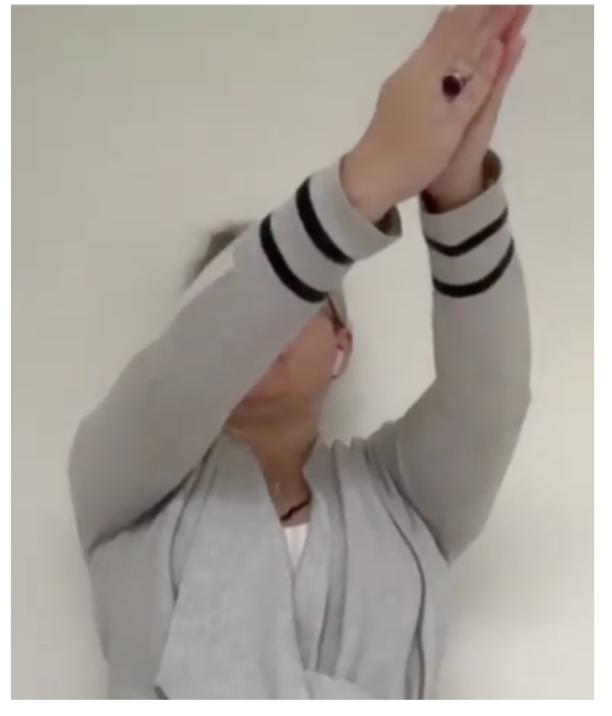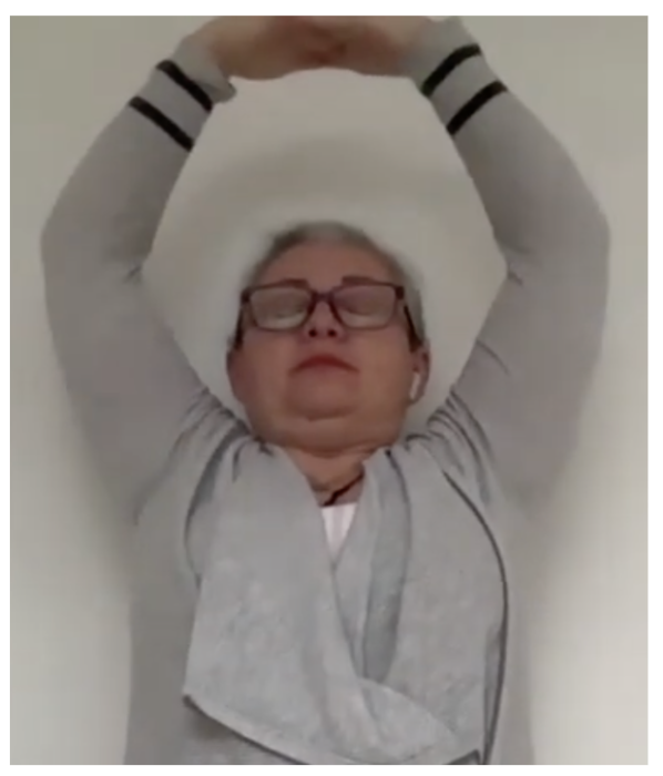- Hand Position: Place both hands over the head palms facing down and lock the fingers.